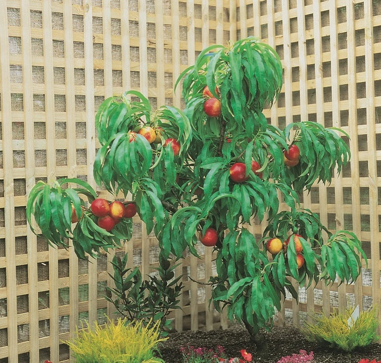 Blüte: Im Frühjahr, bereits vor dem Austrieb, begeistert die Zwergnektarine mit einer üppigen rosa Blüte. Sehr dicht blühend und lang anhaltend. Selbstfruchtbar.